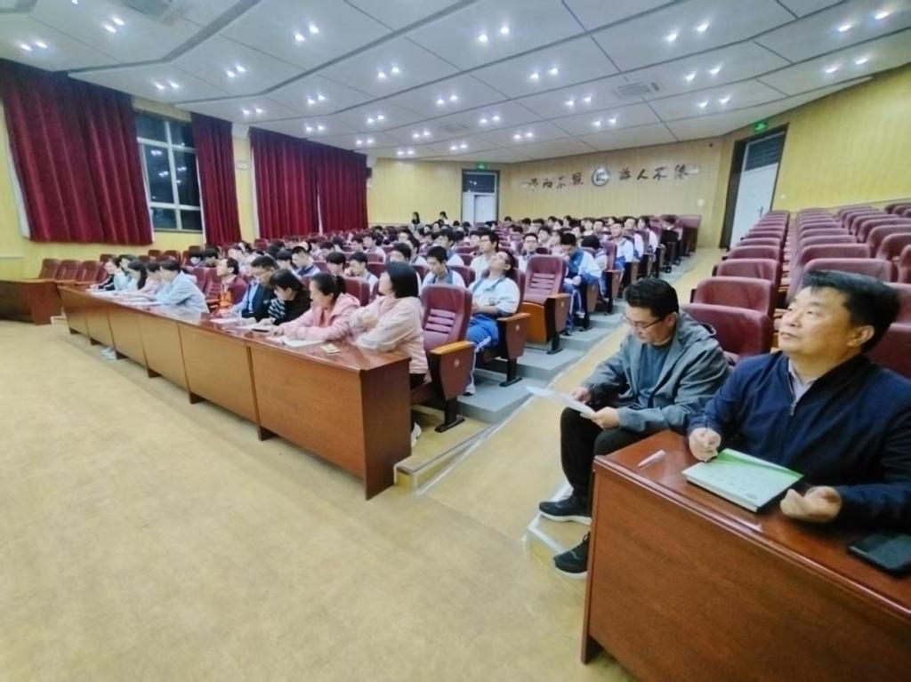 10月14日晚,我校高三级部在阶梯教室举办数学学科高考名师报告会。2025届实验班数学教师张松作了题为《数学复习备考》的报告。数学教研室全体老师和高三级部实验班全体学生参加了本次活动。报告会由高三级部主任郭庆海主持。