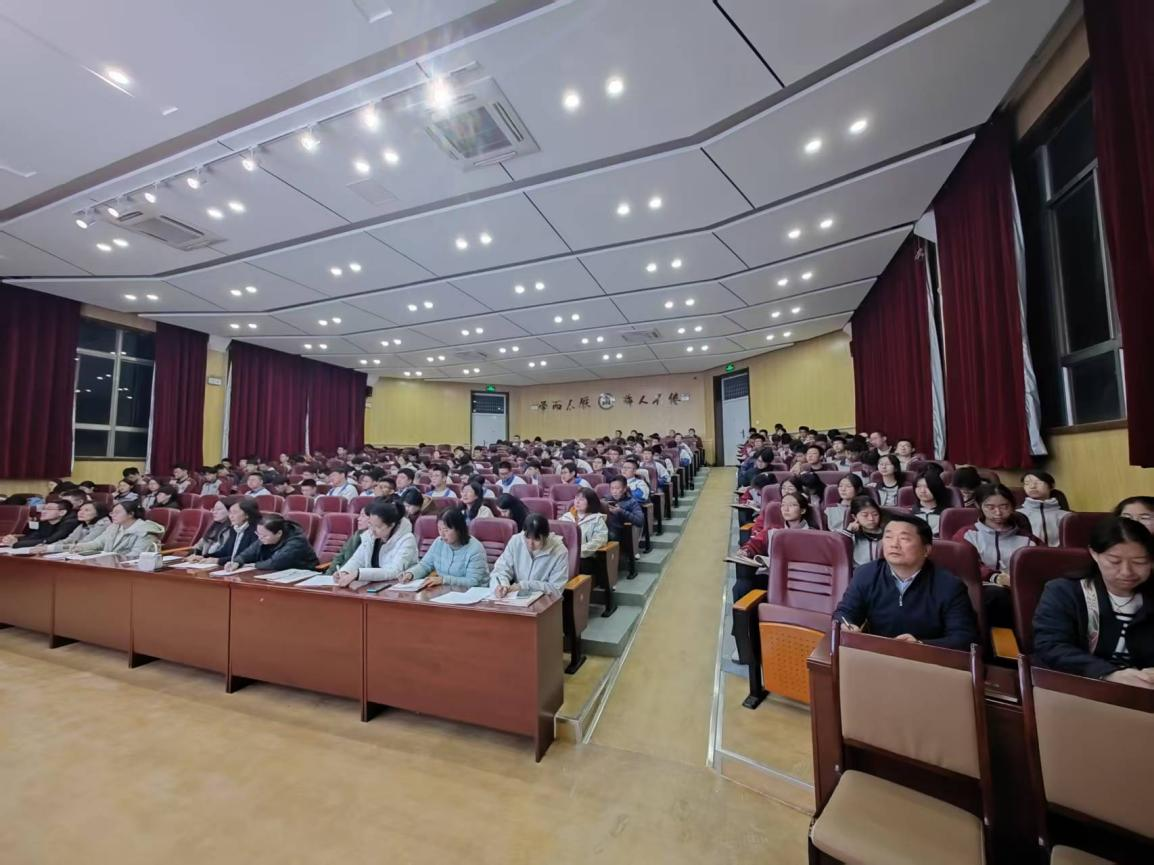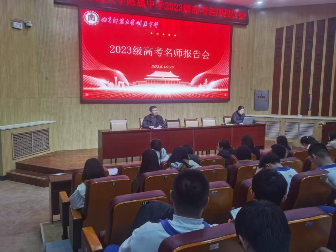 10月22日晚,我校高三级部在阶梯教室举行语文学科高考名师报告会。语文教研室宋昕老师作了题为《2025高考试卷评析暨2026高考备考策略》的报告。党委委员、纪委书记、副校长谢印智,语文教研室全体老师和高三、高二级部实验班学生参加了报告会。高三级部主任郭庆海主持报告会。