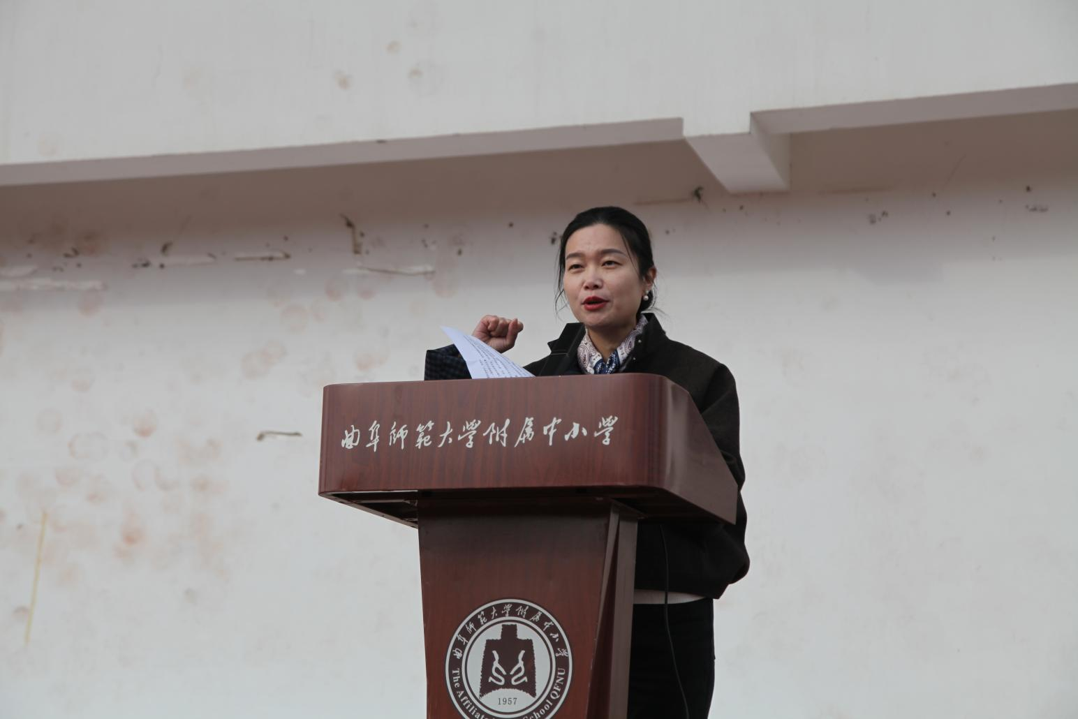 我校纪委办公室主任付洪霞宣读精神文明班级评选标准。