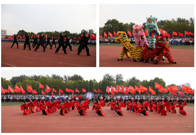 开幕式现场进行了“青春三部曲”表演,分别是由曲阜师范大学国旗护卫队带来的《亮剑青春》、体育科学学院舞狮队带来的《舞动青春》和我校高一高二学生代表带来的阳光大课间《悦动青春》。青春洋溢,朝气蓬勃的表演赢得现场阵阵掌声。