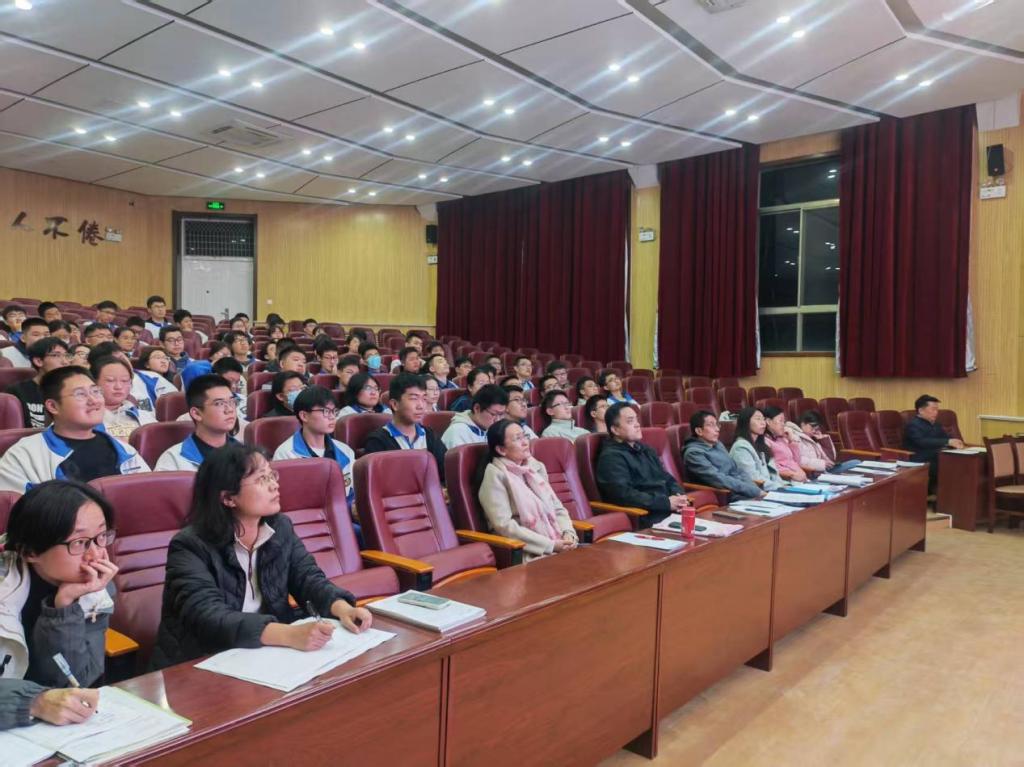 10月28日晚,我校高三级部在阶梯教室举行化学学科高考名师报告会。化学教研室荆莉莉老师作了题为《精准建模 决胜高考》的报告。党委委员、纪委书记、副校长谢印智,化学教研室全体老师和高三级部实验班学生参加了报告会。报告会由高三级部主任郭庆海主持。
