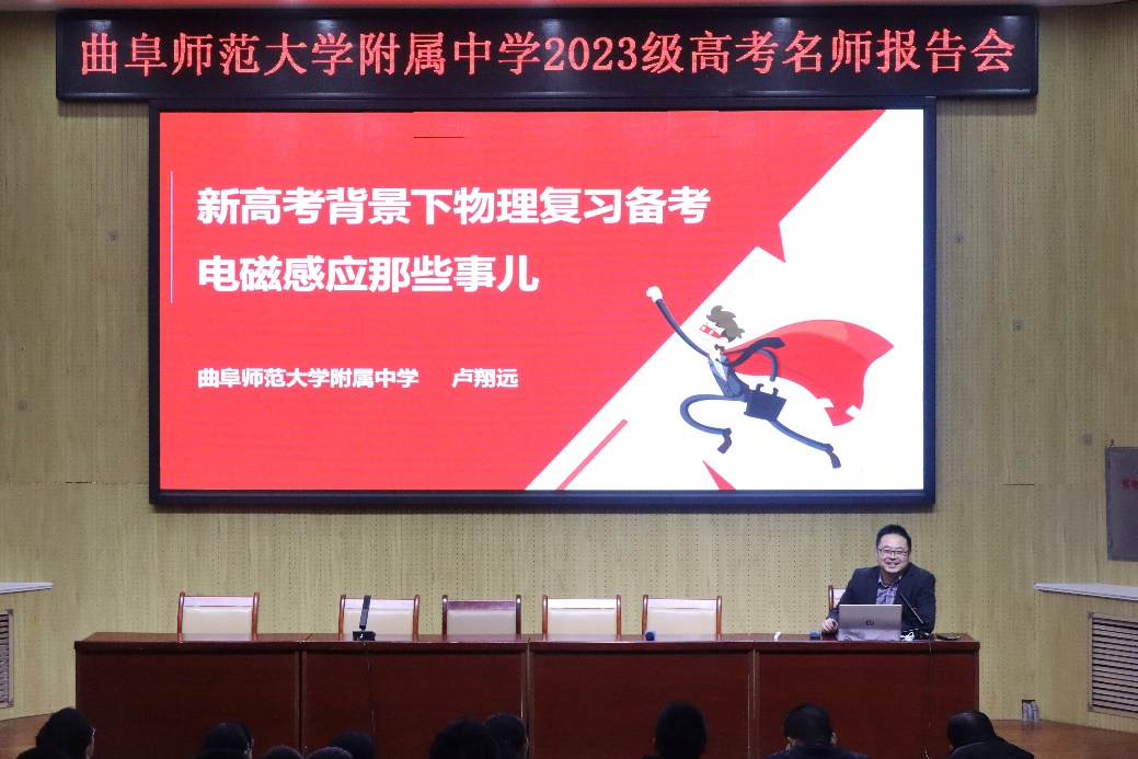 11月4日下午,我校高三级部在阶梯教室举行物理学科高考名师报告会。物理教研室卢翔远老师作了题为《新高考背景下物理复习备考电磁感应那些事儿》的报告。党委副书记、校长孟祥东,党委委员、纪委书记、副校长谢印智,物理教研室全体教师和高三级部实验班全体学生参加了报告会。报告会由高三级部主任郭庆海主持。