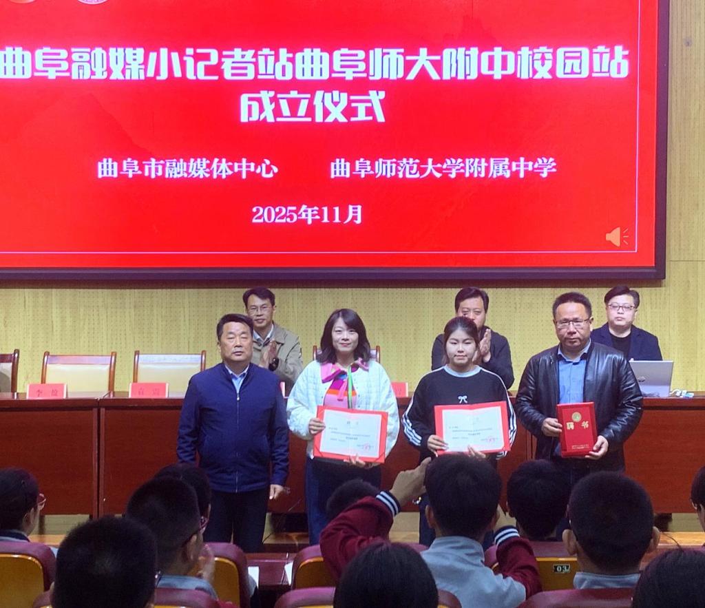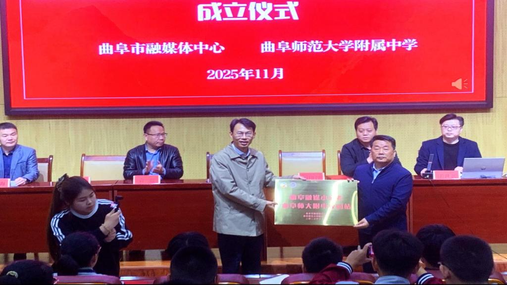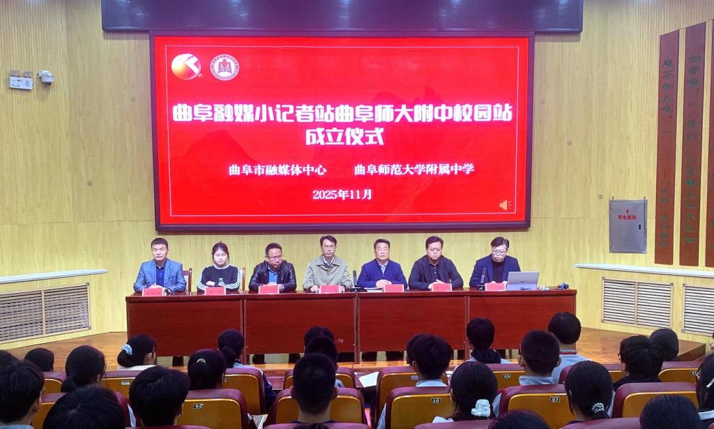 11月5日,“曲阜融媒小记者曲阜师大附中校园站”成立仪式在阶梯教室举行。曲阜市融媒体中心党委委员、副主任孔大鹏,办公室主任袁震,记者代表李盈,学校党委委员、纪委书记、副校长谢印智,党委委员、党政办公室主任张玉广,高三年级主任郭庆海等受邀参加了本次会议。团委书记于世新主持会议。