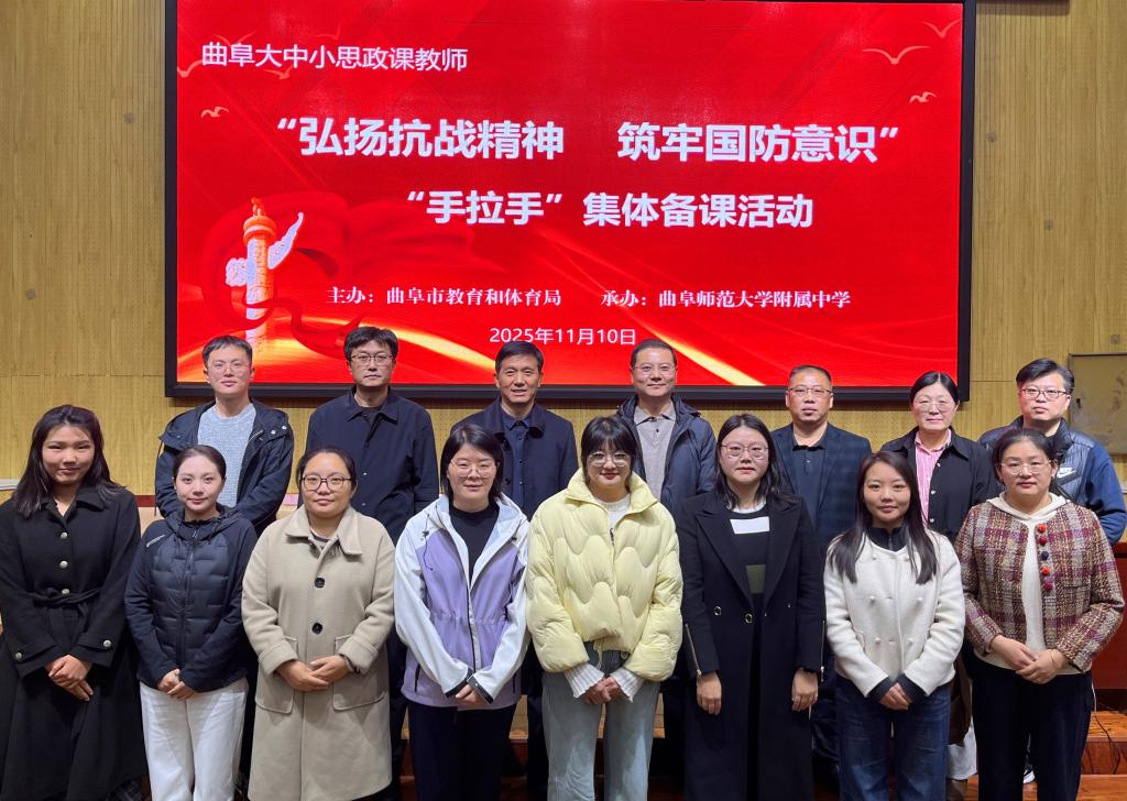 11月10日,我校成功举办曲阜市大中小思政课教师“弘扬抗战精神 筑牢国防意识”“手拉手”集体备课活动。曲阜师范大学马克思主义学院副院长刘宝杰、曲阜市教体局思政一体化办公室负责人刘洪冉、曲阜市教师教育发展中心高中政治教研员王衍利等受邀参加,全市30余名思政课骨干教师参加了本次活动。
