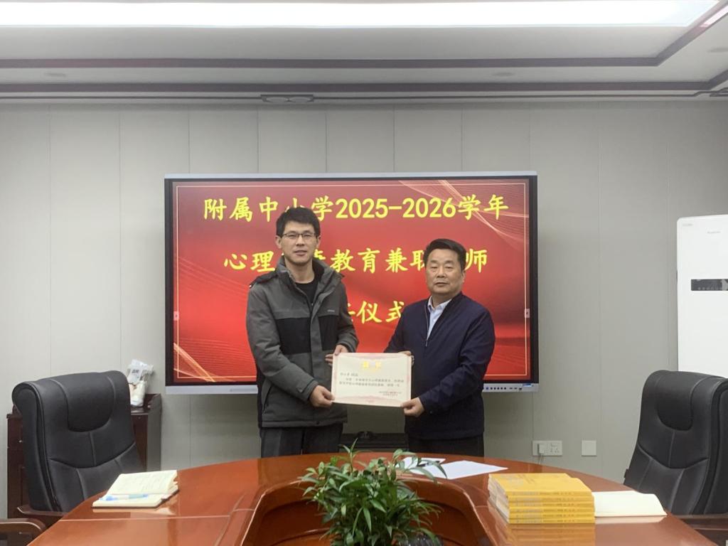 仪式上,谢印智指出青少年的心理健康是全面发展的重要基石,关系到民族的未来与希望。面对新时代学生成长过程中出现的新情况、新特点,加强心理健康教育工作刻不容缓。聘任具有专业背景和丰富实践经验的心理健康教育兼职教师,是学校健全“全员育心”工作机制、拓宽心理育人渠道、提升心理援助专业水平的关键举措。他期望受聘教师能充分发挥专业优势,与学校专职心理教师紧密协作,共同为学生提供更高质量的心理健康服务,营造积极向上、健康和谐的校园氛围。
