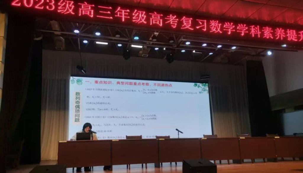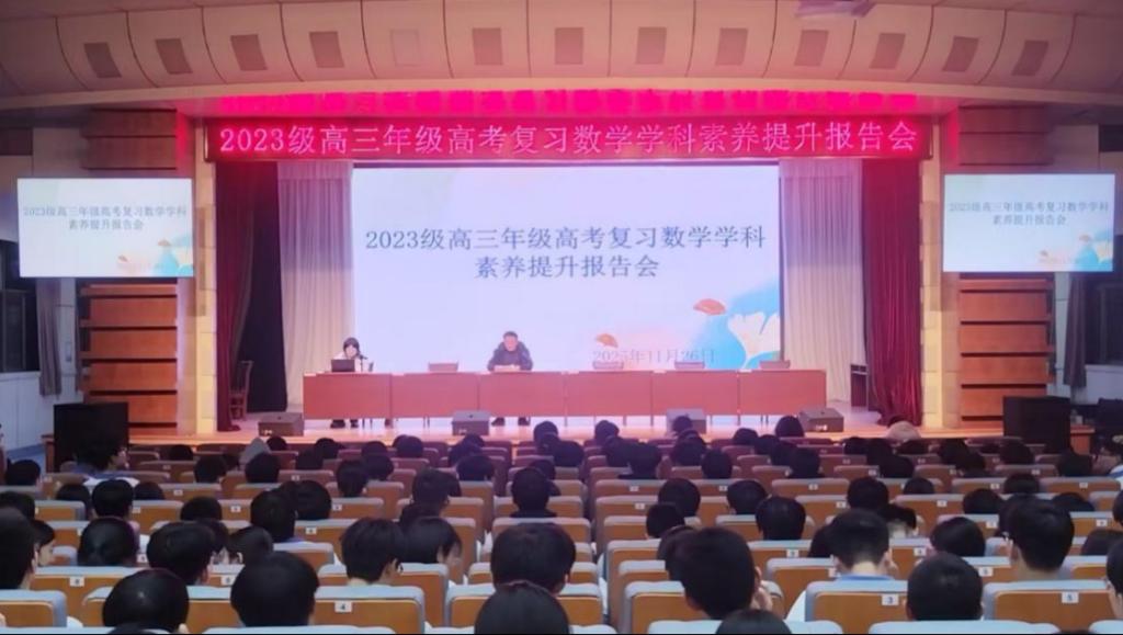 11月26日晚,我校高三级部在弘毅楼报告厅举行高考复习数学学科素养提升报告会。数学教研室盛夏老师作了题为《立足高考,提升素养》的报告。党委委员、纪委书记、副校长谢印智,教务处主任宋修江,数学教研室全体老师和高三学生参加了活动。报告会由高三级部副主任邵兴刚主持。