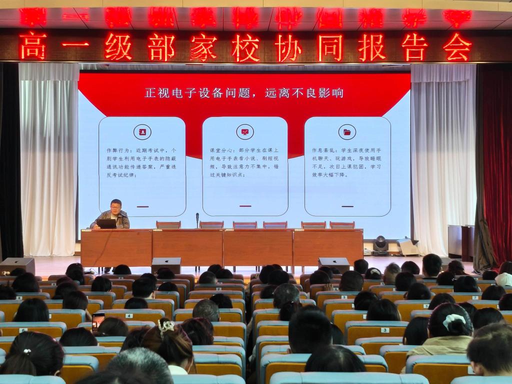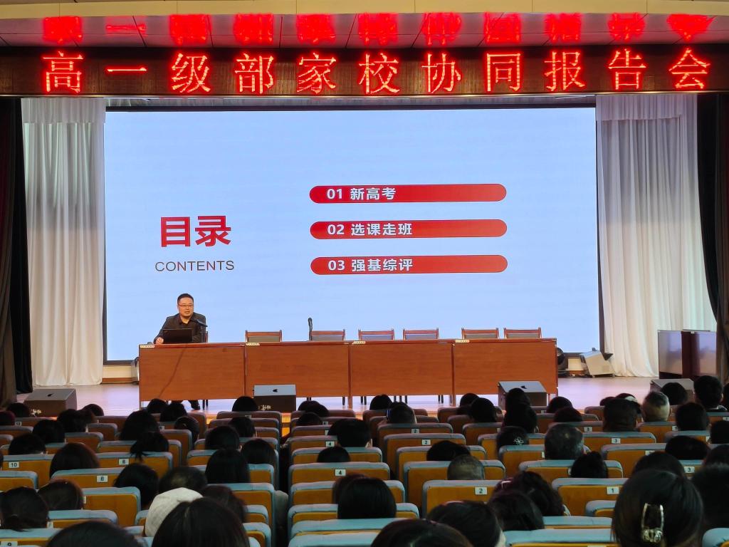 11月29日下午,我校高一级部在弘毅楼四楼报告厅召开了家校协同报告会。高一级部副主任张松、刘文衡和高一全体家长参加了会议。会议由高一级部主任卢翔远主持。
