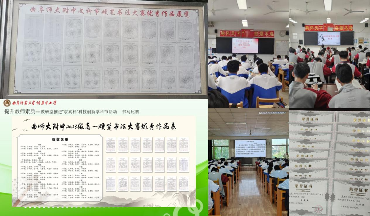 为检验阶段性书写成果,学校响应文件“组织开展相关的展示、比赛、研学和以汉字为主题的文化活动等”的部署,举办全校硬笔书法大赛:初赛以班级为单位选拔,各班语文教师依据“书写规范、字形工整、卷面整洁”的文件相关评价标准择优推荐选手;决赛由语文教研室组织终审,最终评选出一、二、三等奖若干名并予以表彰,以赛事带动书写能力提升。