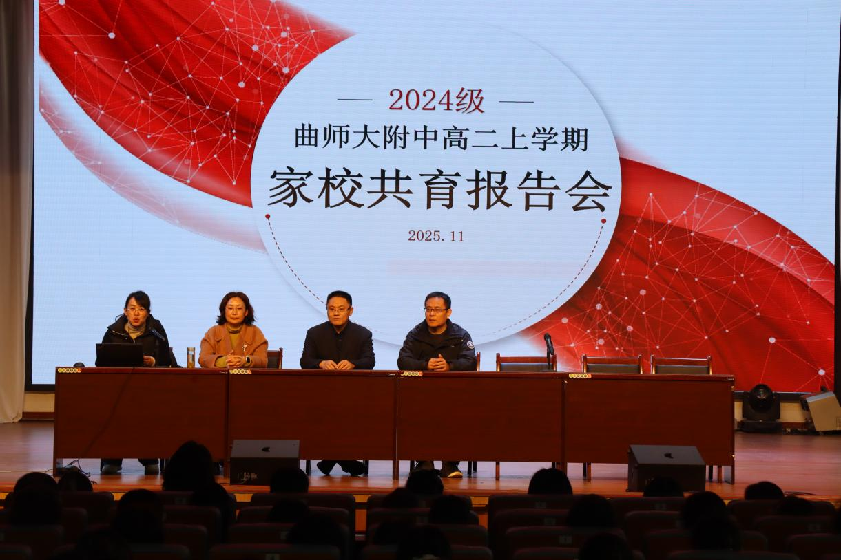 为进一步凝聚教育合力,助力高二学子健康全面成长,11月29日下午,我校高二级部在弘毅楼四楼报告厅举行家校协同教育报告会。曲阜师范大学资产处副处长、高二级部家委会主任刘宪伟,优秀毕业生于雪皓家长郑梅芳,高二级部副主任王殿军,高二级部全体家长参会。会议由高二级部主任赵华卿主持。